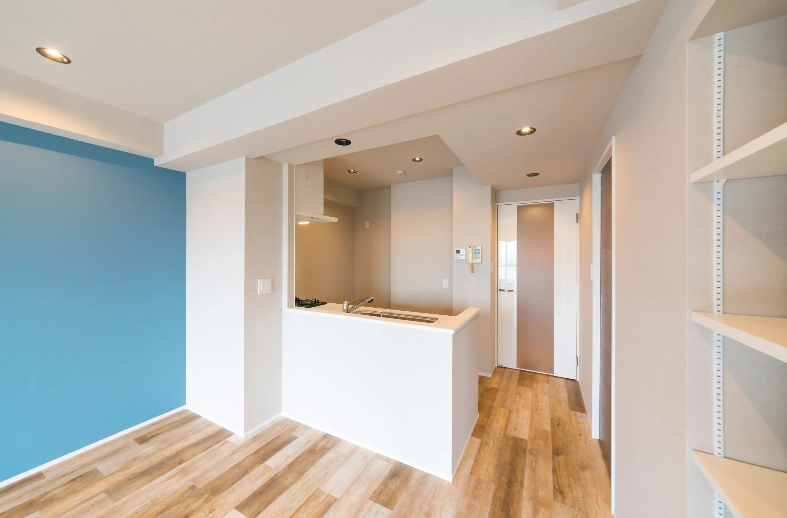 築20年を迎えたマンションにて、内装を白を基調とした明るいデザインへと改装し、清潔感と開放感を高めました。